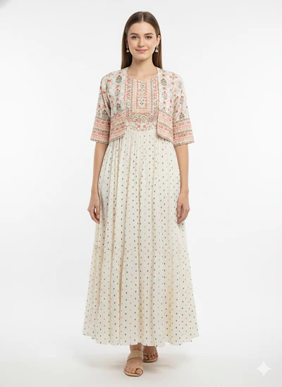 WOMEN SILK FLAREDÂ QUARTER SLEEVE KNEE LENGTH KURTIS