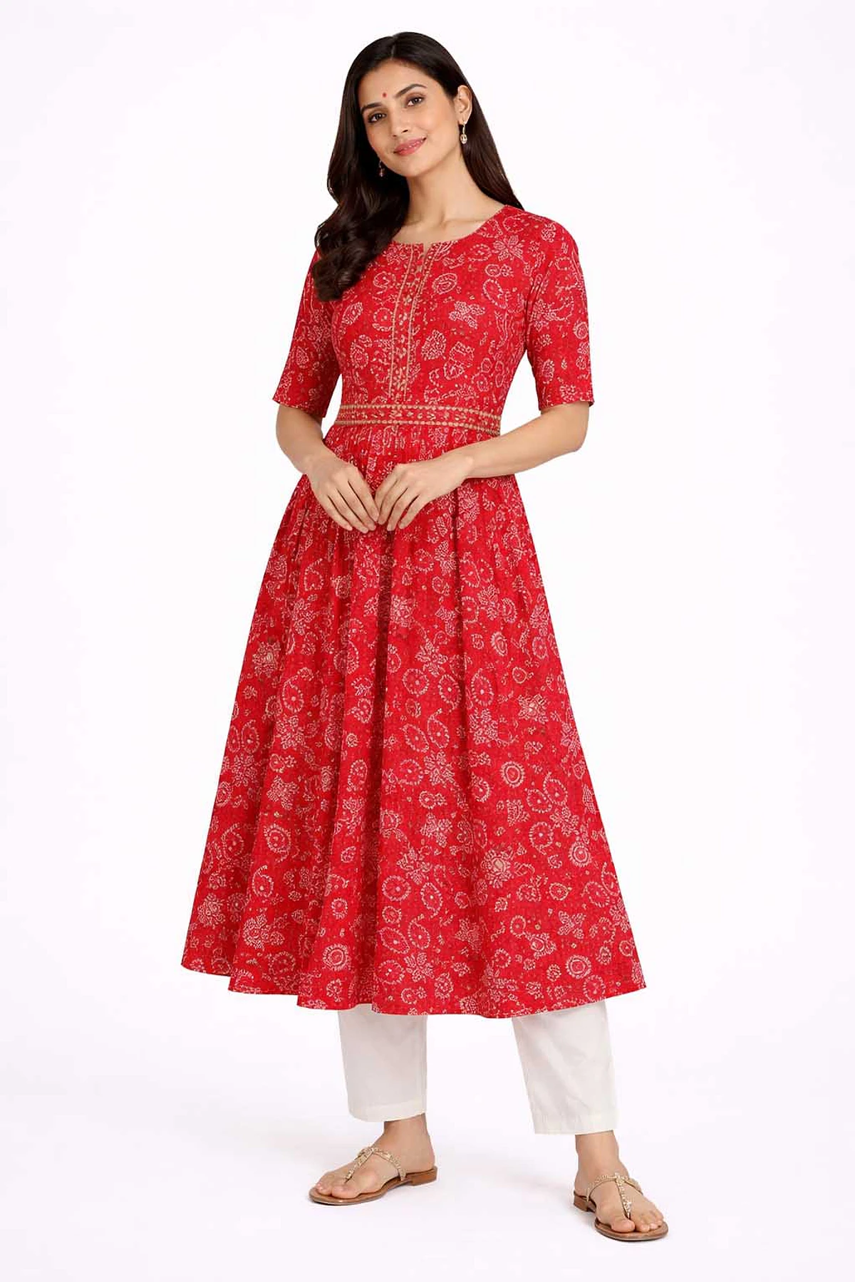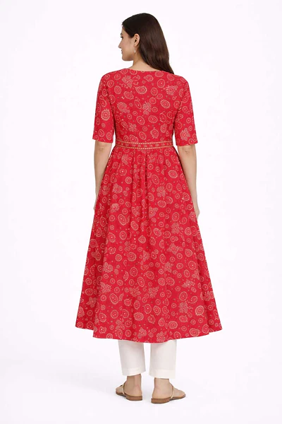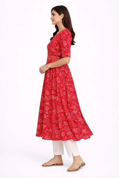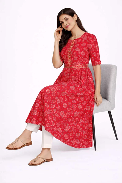 WOMEN SILK FLAREDÂ QUARTER SLEEVE KNEE LENGTH KURTIS