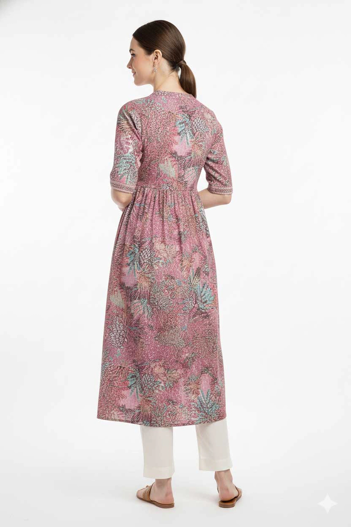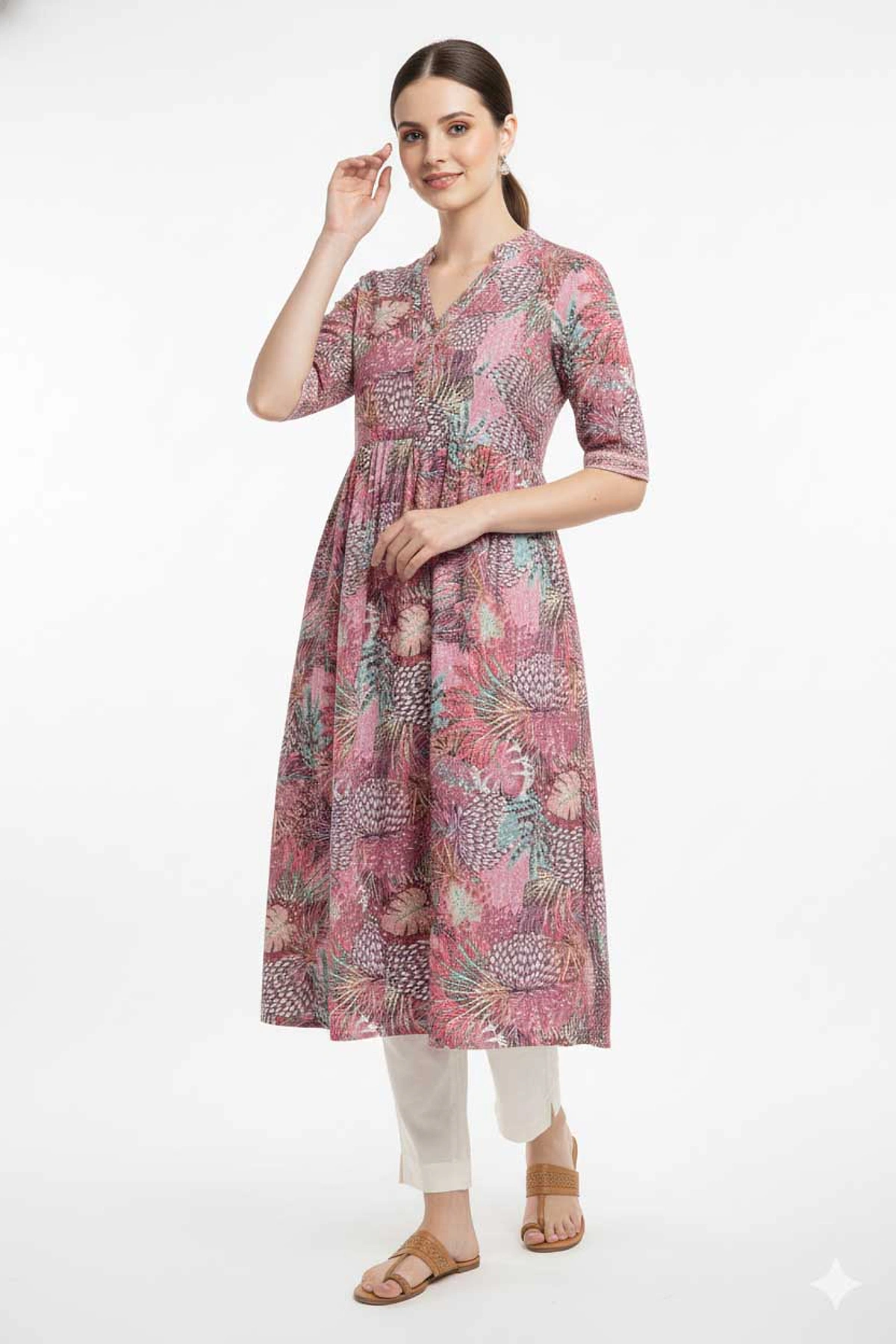 WOMEN QUARTER SLEEVE CALF LENGTH KURTIS