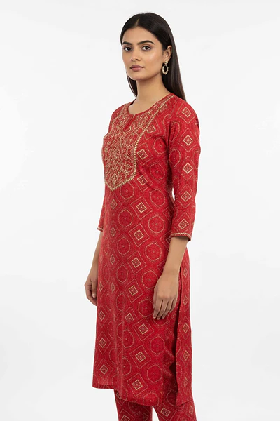 WOMEN SILK FLAREDÂ QUARTER SLEEVE KNEE LENGTH KURTIS