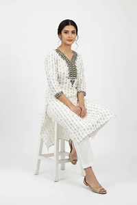 WOMEN CAM SOLID QUARTER SLEEVE KURTIS