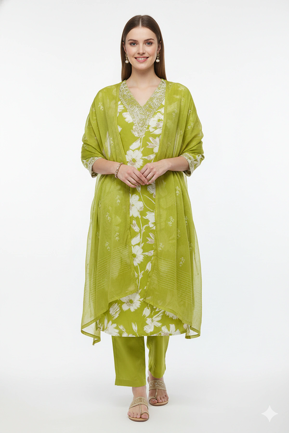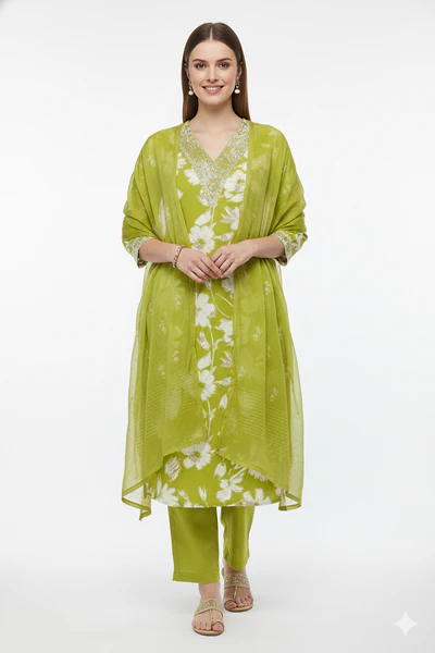 WOMEN SILK FLAREDÂ QUARTER SLEEVE KNEE LENGTH KURTIS